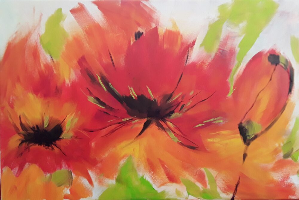 Ich bin ein Farbenmensch und habe eine bunte Seele. Mich inspirieren in erster Linie Farben und dann erst das Motiv. Oft speichere ich nur eine Farbkombination ab die mir auffällt, suche mir zuhause die Farben raus und dann fange ich an zu malen. So auch hier. Es durchflutet jeden Raum mit Helligkeit und Licht