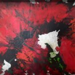 Bei Schüttungen werden Acrylfarben mit Wasser verdünnt und dann möglichst gezielt auf die Leinwand geschüttet. Natürlich ist es ein halb zufälliges Ergebnis, aber man kann es schon beeinflussen, wenn man das Farbverhalten kennt.