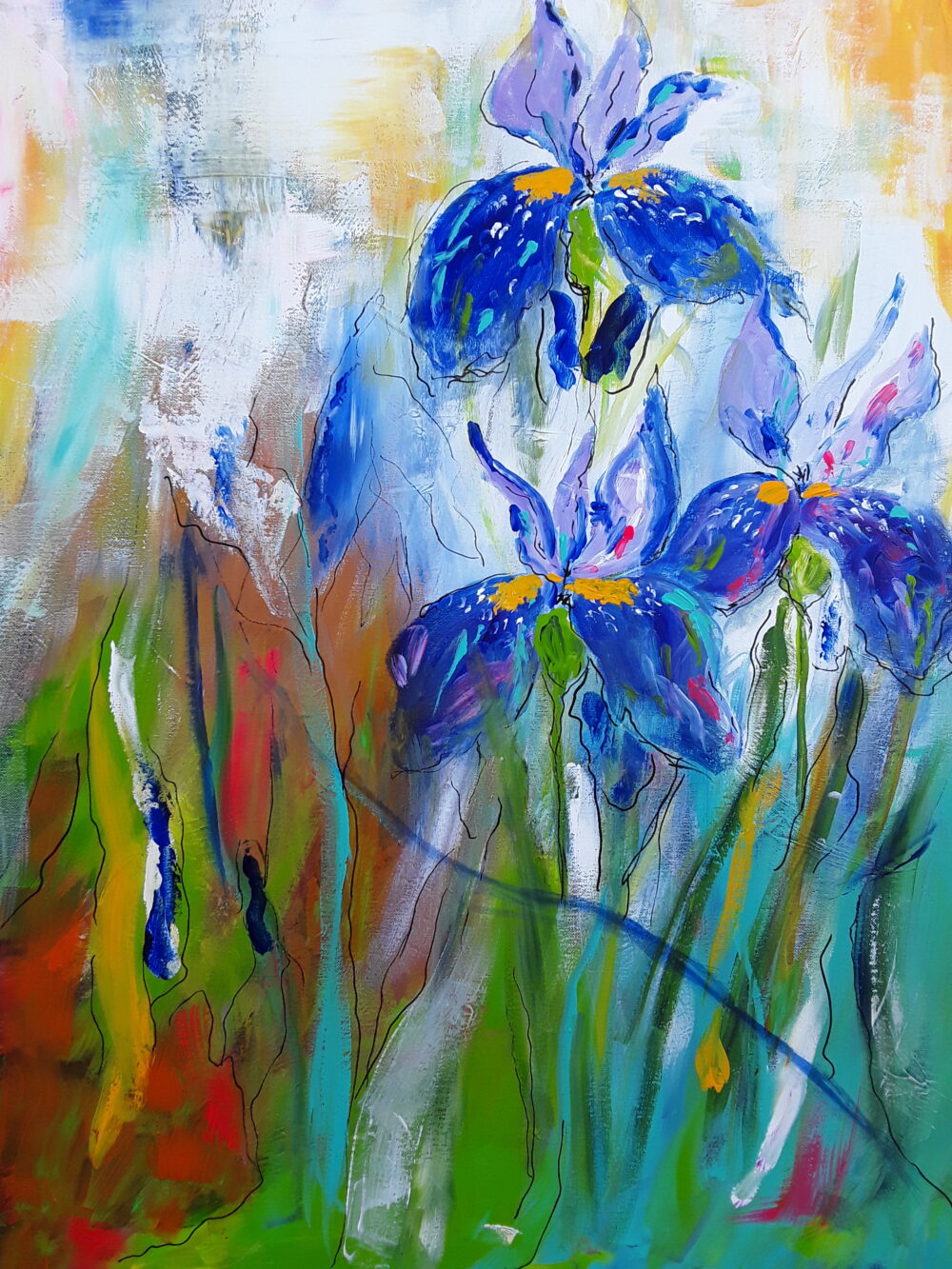 Mehr Impression als Expression. Ein Eindruck, den ich an meinem kleinen Badesee im Frühling immer wieder habe: die Sumpfschwertlilien in der Blüte. Der Botaniker möge mich jetzt nicht festnageln, was sie genau sind. Sie sind jedenfalls immer wieder wunderschön mit ihren tiefblauen Blüten. Zwischen den vielen verschiedenen Sumpfstauden leuchten ihre Blüten und haben mich zu diesem Bild inspiriert. Nachdem ich keine Skizzen mache, mag ich irgendwie nicht, ist es rein aus der Erinnerung entstanden. Wobei das nicht so schwer ist, mit dem Fahrrad bin ich in 10 Minuten am See und kann meinen Eindruck auffrischen. Möge der Betrachter:in sei e Freude daran haben.